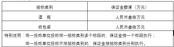 (一)保證金繳納:在投標人報名成功且資格審核通過后,于2020年8月17日下午17:00(北京時間)前,以銀行轉(zhuǎn)款或現(xiàn)金方式繳納至招標方指定賬戶(即:四川沱牌貿(mào)易有限公司,開戶銀行及賬號:中國建設(shè)銀行股份有限公司射洪縣支行,51050167710800000028)。